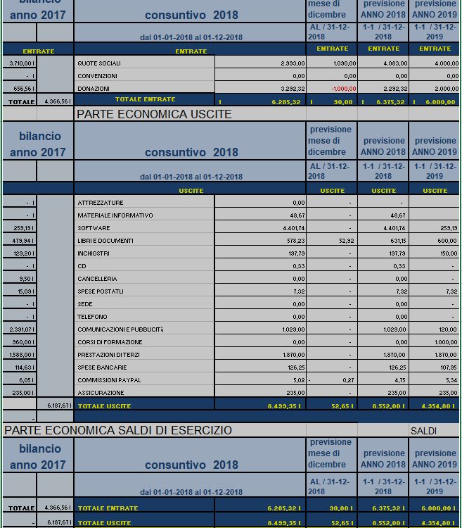 RELAZIONE SULLE PREVISIONI DI BILANCIO 2018 e 2019 SINTESI La previsione si basa sul BILANCIO CONSUNTIVO A FINE NOVEMBRE (periodo dall1-1-2018 al 30-11-2018) e la previsione di entrate e uscite del prossimo mese di dicembre 2018. Insieme consentono di fare una ragionevole previsione del BILANCIO CONSUNTIVO 2018. La PREVISIONE DI […]