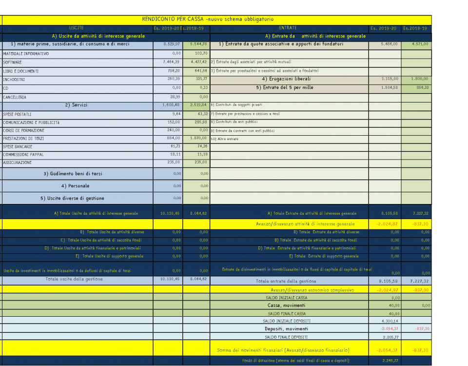 PRECONSUNTIVO BILANCIO 2020 AL 30 NOVEMBRE 2020 E’ possibile scaricare il presente PRECONSUNTIVO in formato PDF da questi due link: RELAZIONE DI BILANCIO PRECONSUNTIVO 2020 ALLEGATI DI BILANCIO PRECONSUNTIVO 2020 Riportiamo di seguito in immagine il bilancio in oggetto secondo lo schema di rendicontazione per cassa ora obbligatorio Di fatto l’anno […]
